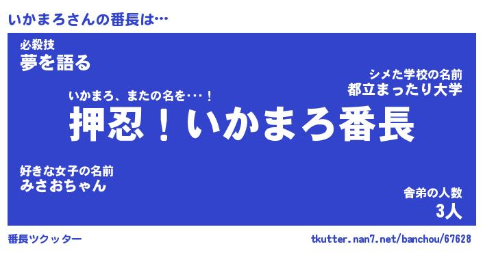 | 肩書あだ名 | 『いかまろ御曹司』『いかまろ総理大臣』 |