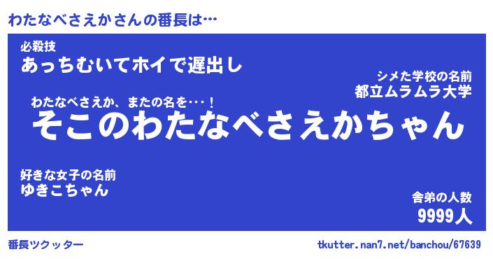 | ポケモン風あだ名 | 『ワタチュウ』『ワタナダネ』 |