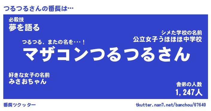 | ヘコむあだ名 | 『つるっふぃ~』『つくし』 |