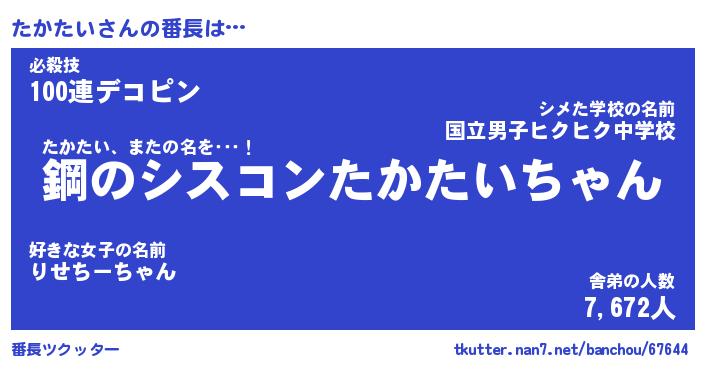 | 2回繰り返すあだ名 | 『たかたか』『たたかか』『けんけん』 |