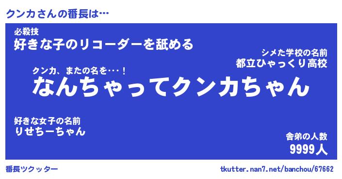 | ヒーロー風カッコイイあだ名 | 『スーパークンカ』『ウルトラクンカマン』 |