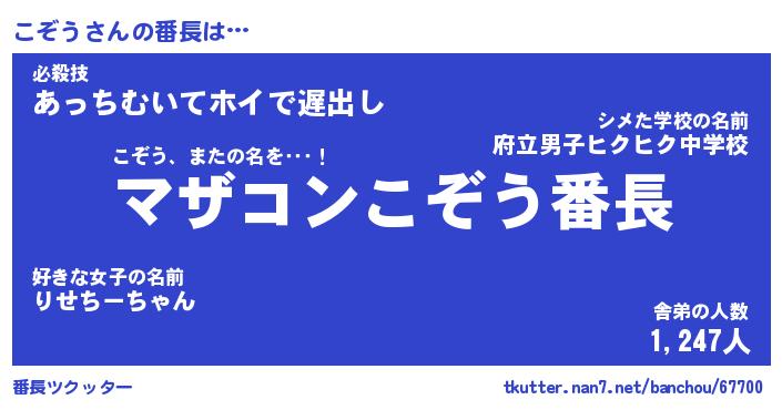 | 意味不明あだ名 | 『ペロリンこぞう』『こぞうフォーエバー』 |