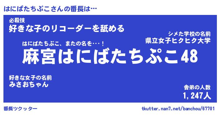 | 2回繰り返すあだ名 | 『はにはに』『ははにに』『ぬぷぬぷ』 |