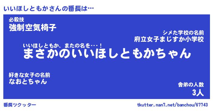 | 恥ずかしいあだ名 | 『プリティーいいほしともか』『いいちん』 |