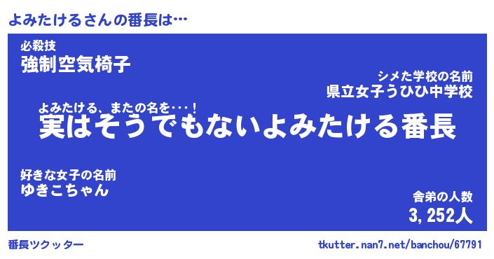 | ファンタジー風あだ名 | 『ヨミフェル』『エターナルヨミタケルー』 |