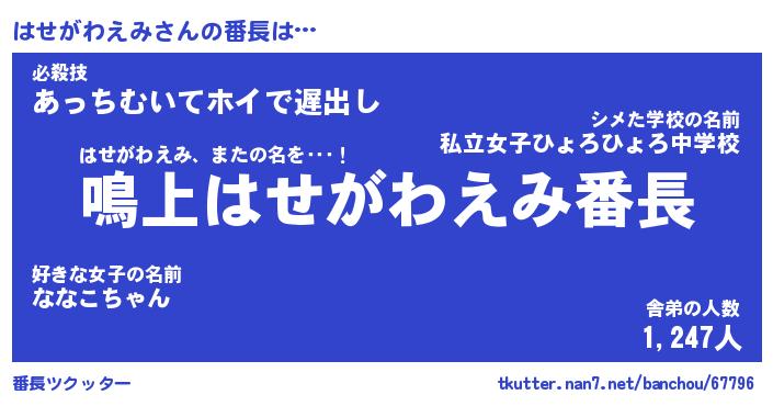 | 伝説のあだ名 | 『封印されしスナイパーはせがわえみ』 |