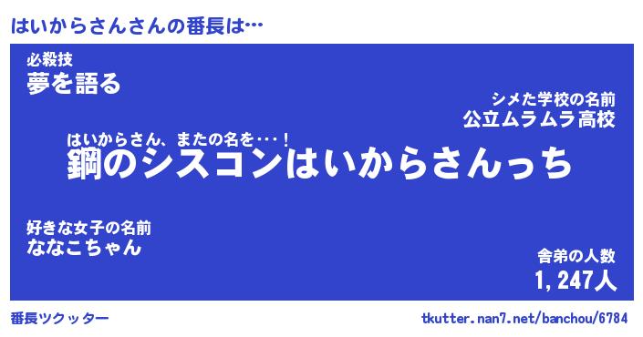 | ピコ太郎風あだ名 | 『ハコ一郎』『ピハ四郎』『ハイ四郎』 |