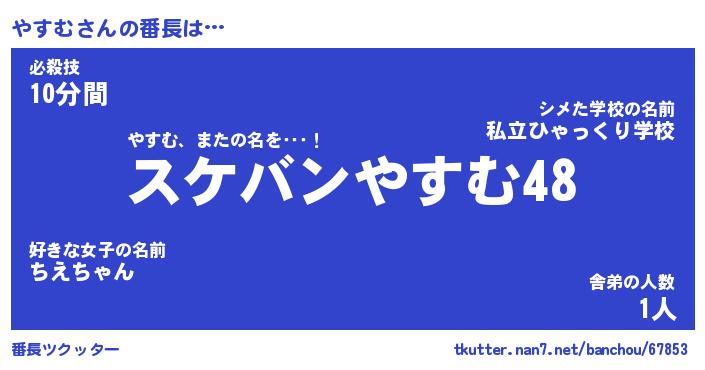 | ポケモン風あだ名 | 『ヤスチュウ』『ヤスムダネ』 |