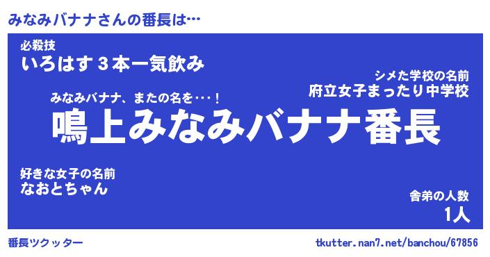 | ヒーロー風カッコイイあだ名 | 『スーパーミナミバナナ』『黄金騎士ミナ』 |
