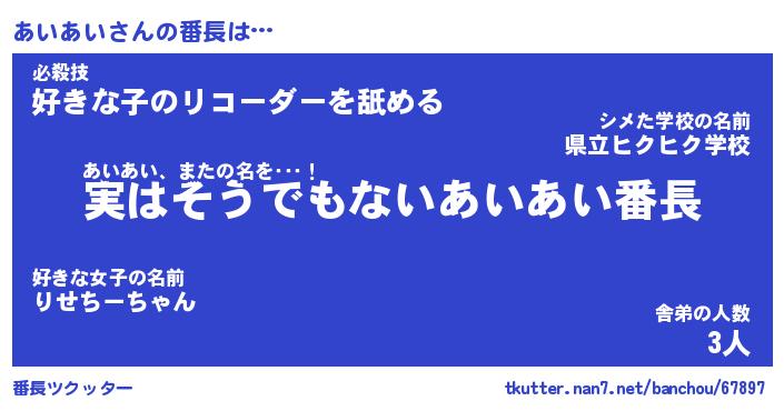 | 意味不明あだ名 | 『ペロリンあいあい』『永久保存あいあい』 |
