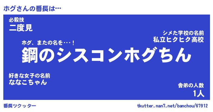 | ヘコむあだ名 | 『ホグふぇ~』『酢こんぶ』『ホグお』 |