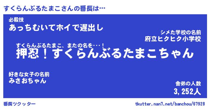 | ヒーロー風カッコイイあだ名 | 『スーパースクランブルタマコ』 |