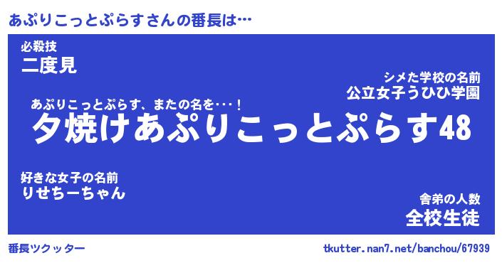 | 肩書あだ名 | 『あぷりこっとぷらす店長』 |