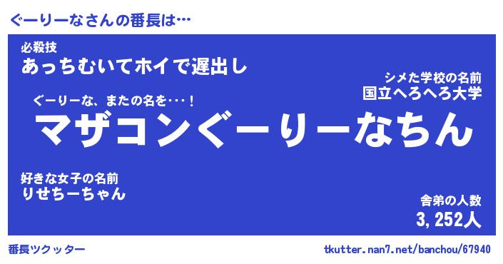 | 伝説のあだ名 | 『封印されしスナイパーぐーりーな』 |