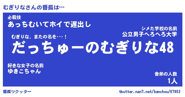 | 伝説のあだ名 | 『伝説のスナイパーむぎりな』 |