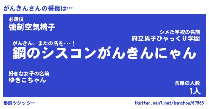 | ポケモン風あだ名 | 『ガンチュウ』『ガンキダネ』 |