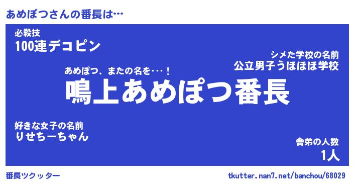 | ヒーロー風カッコイイあだ名 | 『スーパーアメポツ』『黄金騎士アメ』 |
