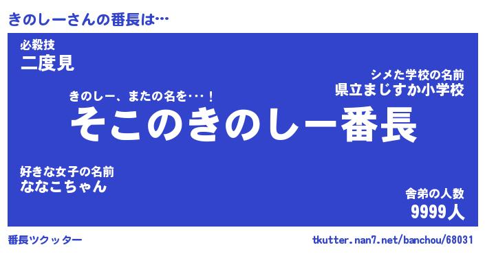 | 意味不明あだ名 | 『ペロリンきのしー』『永久保存きのしー』 |