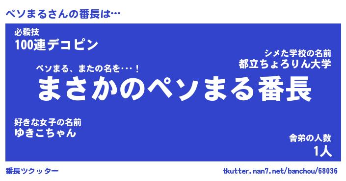 | 肩書あだ名 | 『ペソまる御曹司』『ペソまる国家主席』 |