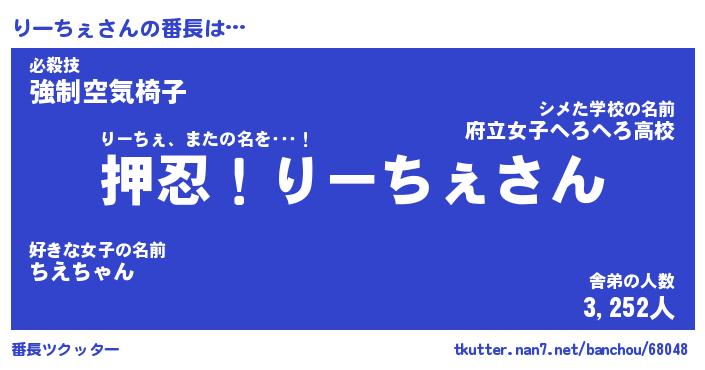 | 伝説のあだ名 | 『封印されしスナイパーりーちぇ』 |