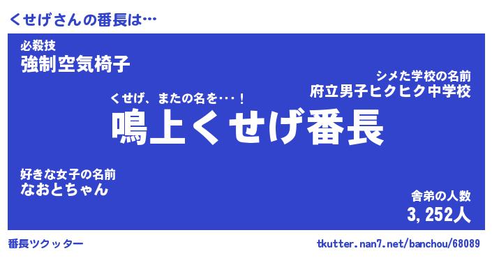 | ヒーロー風カッコイイあだ名 | 『スーパークセゲ』『ウルトラくせげマン』 |