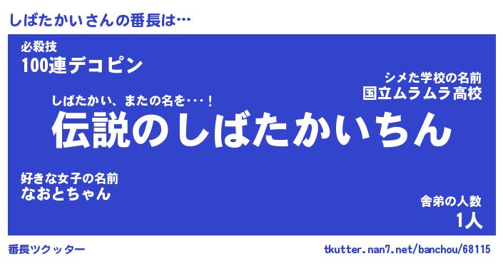 | ファンタジー風あだ名 | 『シバフェル』『エターナルシバタカイー』 |