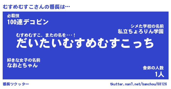 | ヒーロー風カッコイイあだ名 | 『スーパームスメムスコ』『幻影騎士ムス』 |