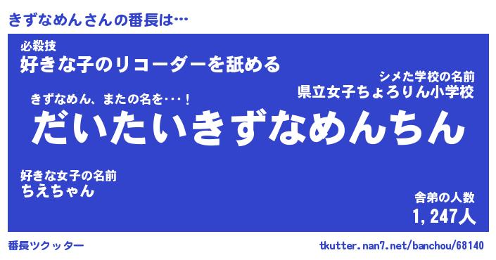 | 男性向けラノベタイトル風あだ名 | 『きずなめんの憂鬱』 |