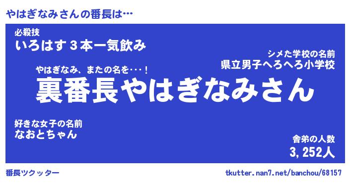 | ファンタジー風あだ名 | 『ヤハフェル』『エターナルヤハギナミー』 |