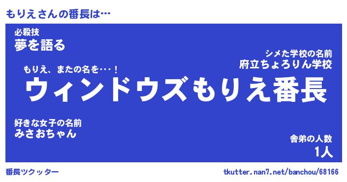 | 伝説のあだ名 | 『伝説のスナイパーもりえ』 |