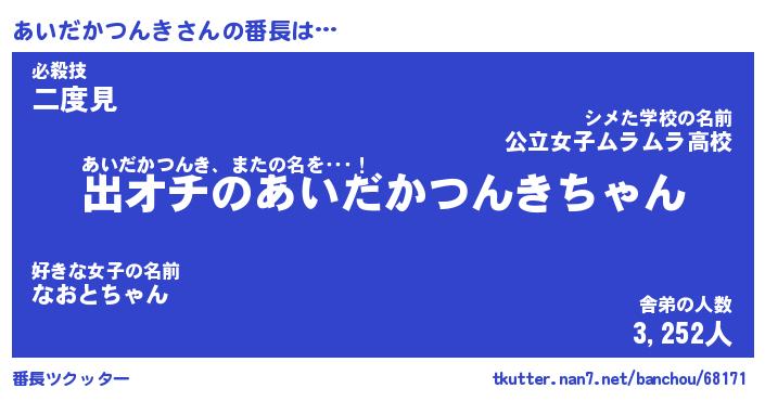 | 伝説のあだ名 | 『伝説のスナイパーあいだかつんき』 |
