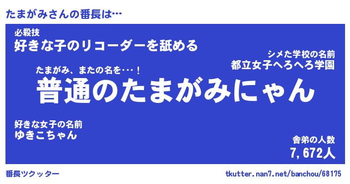 | 意味不明あだ名 | 『ペロリンたまがみ』『永久保存たまがみ』 |