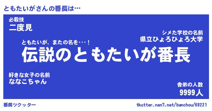 | 伝説のあだ名 | 『伝説のスナイパーともたいが』 |