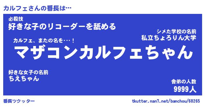 | 肩書あだ名 | 『カルフェ店長』『カルフェ大統領』 |