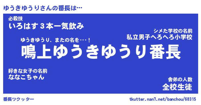 | ピコ太郎風あだ名 | 『ユコ六郎』『ピユ四郎』『ユウ一郎』 |