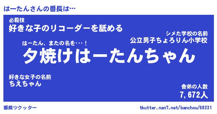 | ポケモン風あだ名 | 『ハーチュウ』『ハータダネ』 |