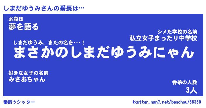 | ヒーロー風カッコイイあだ名 | 『スーパーシマダユウミ』『魔戒騎士シマ』 |