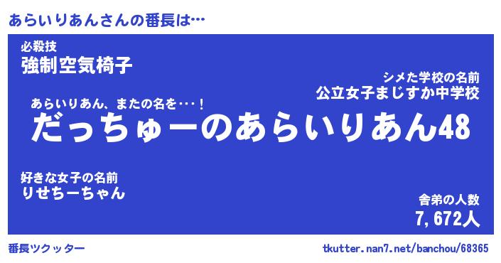 | 肩書あだ名 | 『あらいりあんCEO』『あらいりあん大統領』 |