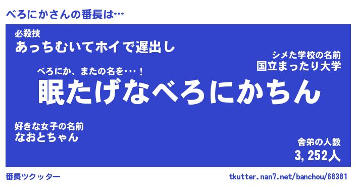 | 意味不明あだ名 | 『ペロリンべろにか』『永久保存べろにか』 |