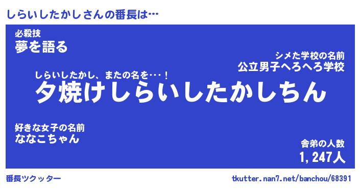 | 意味不明あだ名 | 『ペロリンしらいしたかし』 |