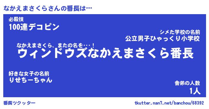 男性向けラノベタイトル風あだ名 | 『なかえまさくらの憂鬱』 |