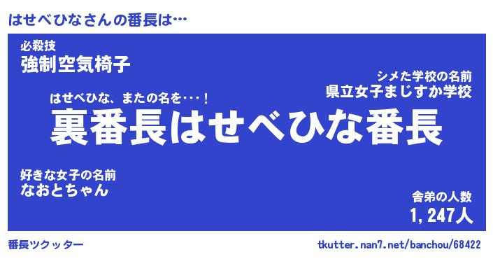 | ヒーロー風カッコイイあだ名 | 『スーパーハセベヒナ』『銀牙騎士ハセ』 |