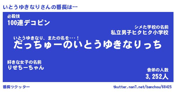 | ピコ太郎風あだ名 | 『イコ五郎』『ピイ六郎』『イト四郎』 |