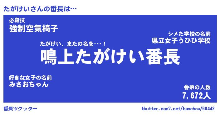 | 意味不明あだ名 | 『ペロリンたがけい』『永久保存たがけい』 |
