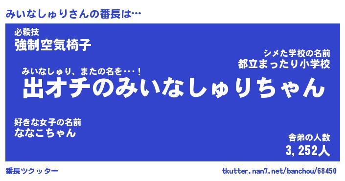 | 男性向けラノベタイトル風あだ名 | 『みいなしゅりの憂鬱』 |