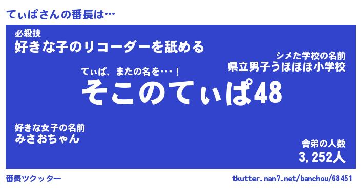 | ヒーロー風カッコイイあだ名 | 『スーパーティパ』『ウルトラてぃぱマン』 |