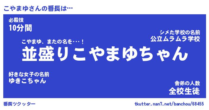 | 男性向けラノベタイトル風あだ名 | 『こやまゆの憂鬱』 |