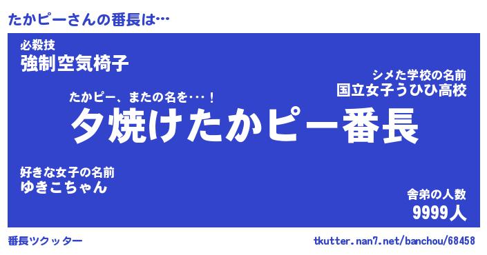 | 意味不明あだ名 | 『ペロリンたかピー』『永久保存たかピー』 |