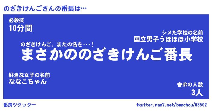 | 肩書あだ名 | 『のざきけんご店長』『のざきけんご団長』 |