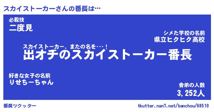 | ヒーロー風カッコイイあだ名 | 『スーパースカイストーカー』 |